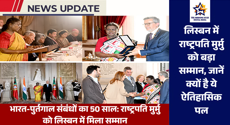 “राष्ट्रपति द्रौपदी मुर्मु को पुर्तगाल की राजधानी लिस्बन में आयोजित एक विशेष समारोह के दौरान ‘सिटी की ऑफ ऑनर’ से सम्मानित किया गया। यह सम्मान लिस्बन के मेयर द्वारा प्रदान किया गया और यह भारत-पुर्तगाल संबंधों में गहराई का प्रतीक माना जा रहा है।”