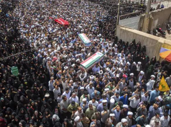इजराइल की कार्रवाई में ईरान के कोम शहर में रिवोल्यूशनरी गार्ड के दो सदस्य मारे गए। इनका जनाजा शुक्रवार को नमाज के बाद निकाला गया। उधर, संयुक्त राष्ट्र में ईरानी राजदूत अमीर सईद इरावानी ने अपने देश के बच्चों की मौत की तस्वीरें दिखाते हुए इजराइल के खिलाफ गंभीर आरोप लगाए।