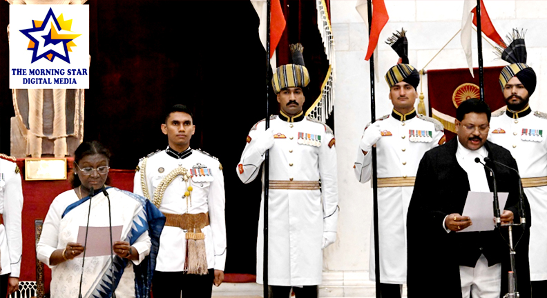 राष्ट्रपति द्रौपदी मुर्मु ने राष्ट्रपति भवन में जस्टिस गवई को भारत के मुख्य न्यायाधीश के पद की शपथ दिलाई।
